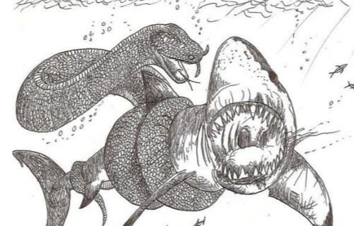 其实在史前海洋还有一种巨型蛇类和沧龙是同祖先,它们就是古杯蛇类。古杯蛇类出现于古新世早期,其祖先可能是由陆栖蜥蜴进化而来的海生蜥蜴。在白垩纪晚期,海生蜥蜴类分化出两支后裔,一支发展成沧龙类,另一支则演化出古海生蛇类。