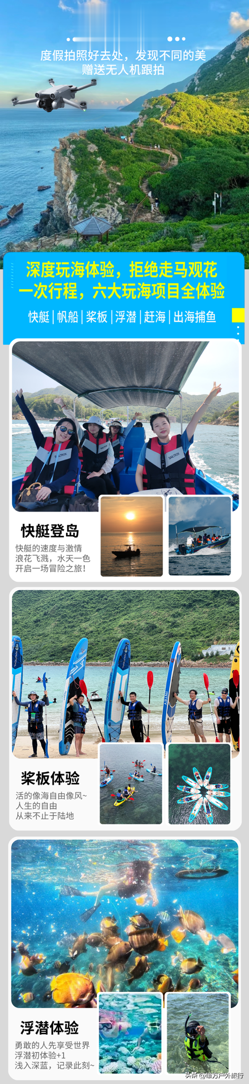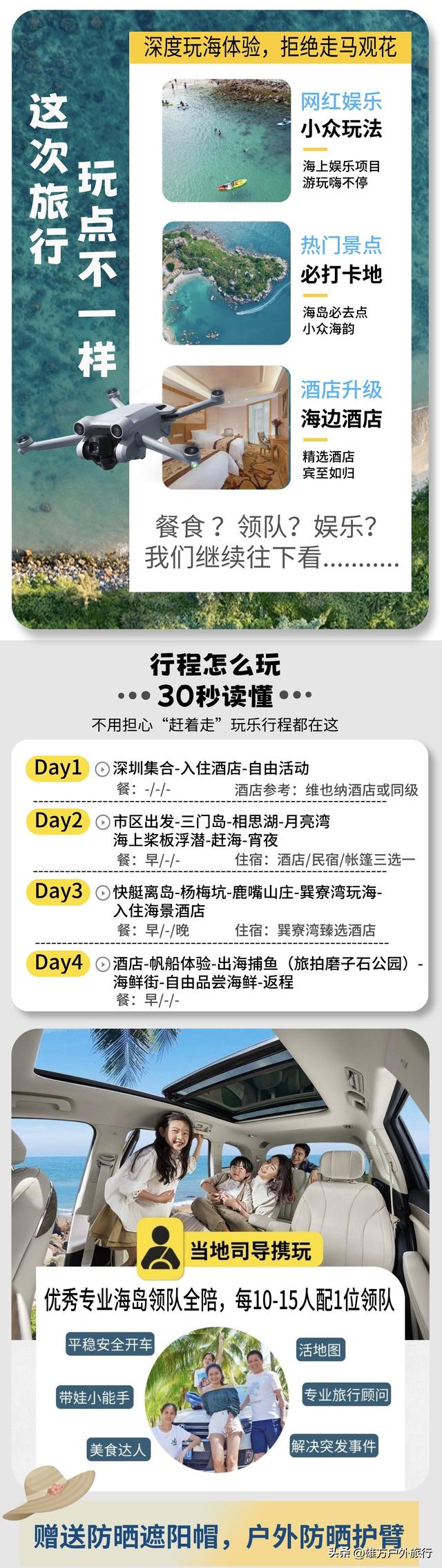 2)随团领队配备无人机摄影,只要天气好,果冻海白沙滩大片少不了,提供基础拍摄服务;
