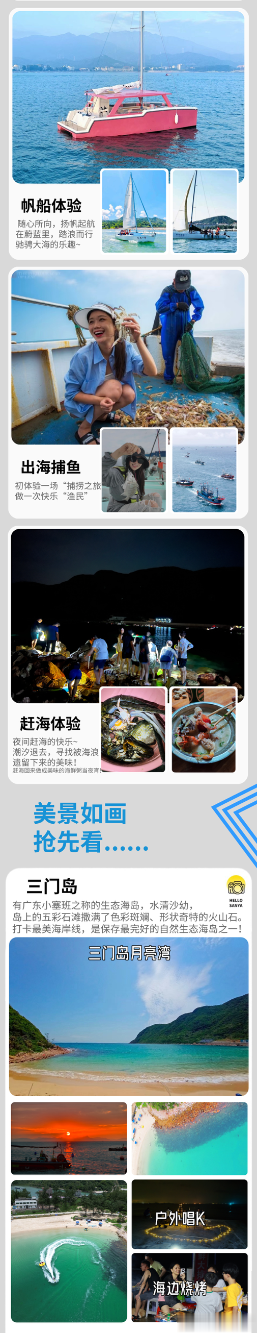 7)三门岛水上项目:配备桨板体验,赶海工具租用费;