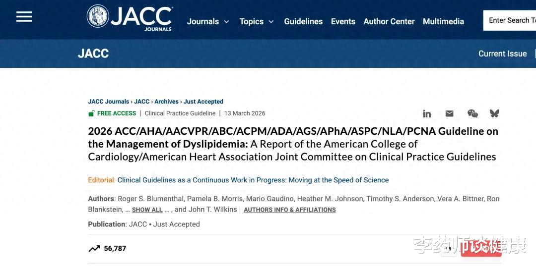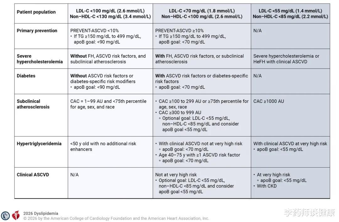 Blumenthal, R, Morris, P, Gaudino, M. et al. 2026 ACC/AHA/AACVPR/ABC/ACPM/ADA/AGS/APhA/ASPC/NLA/PCNA Guideline on the Management of Dyslipidemia: A Report of the American College of Cardiology/American Heart Association Joint Committee on Clinical Practice Guidelines. JACC. null2026, 0 (0) .