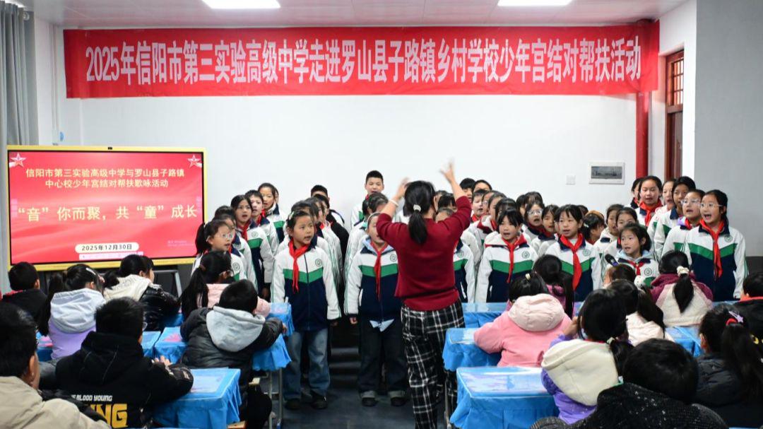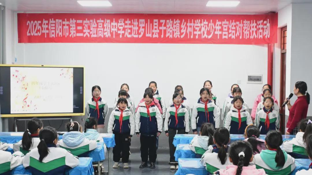 此次活动,不仅让信阳市第三实验高级中学老师看到了在双方合作下,合唱团建设的成果;更看到了乡村孩子对艺术的渴望与潜力;让我们感受到了帮扶活动的积极意义。未来,信阳市第三实验高级中学将继续深化与子路镇中心校和少年宫的结对帮扶,通过课程分享、师资交流、物资支持等多种形式,持续为乡村美育教育发展注入力量。(贾海燕)