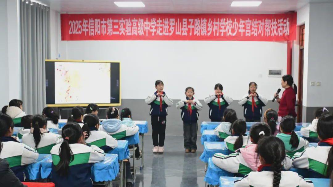 为深化城乡教育资源互通,助力乡村学校美育教育发展,让乡村孩子感受艺术魅力、点燃音乐梦想。2025年12月30日,信阳市第三实验高级中学志愿服务团队在校党总支委员、副校长穆辉的带领下,再次走进罗山县子路镇中心校,开展结对帮扶系列活动。