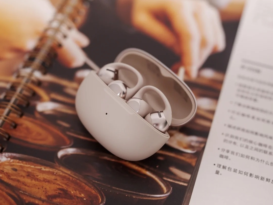 它的音质表现完全不输更高价位的机型,13mm 巨能钛振膜让声音的通透度拉满,搭配的空间音频和头部追踪功能,能让听歌、看剧的沉浸感直接提升一个档次。单耳 7g的重量看似不算轻,但耳夹处的弧形软梁用了亲肤的软质材料,夹力调得刚刚好,佩戴的舒适度很好。