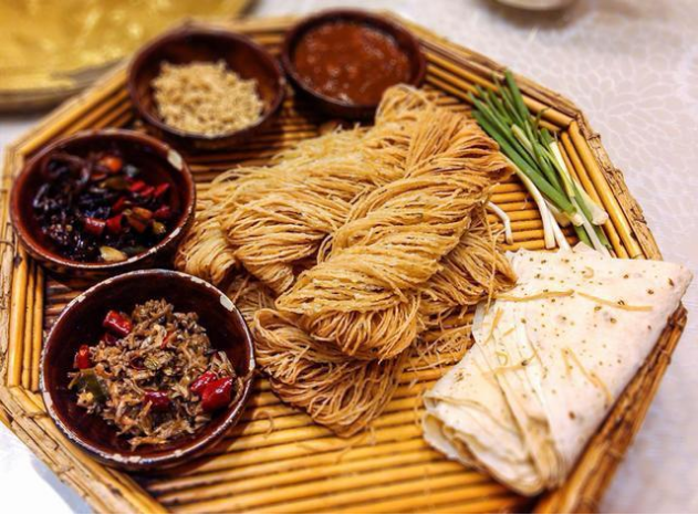 刚出锅的金丝馓子,色泽金黄,散发着诱人的光泽。随手掰下一根放入口中,只听 “嘎吱” 一声,脆得仿佛能听见牙齿与馓子碰撞的声音,咸鲜的味道在舌尖散开,还带着丝丝麦粉的回甘,越嚼越香。若是将馓子泡在辣汤里,它便会迅速吸饱汤汁,变得软脆交织,口感丰富极了,让人根本停不下筷子。