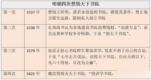 明朝中后期,文字狱缓和了下来,很少出现望文生义、牵强附会这样的案例了,但以党争为目的的文字狱和打击“异端”思想的文字狱出现了。明朝时期的党争非常严重,群臣之间拉帮结派,互相攻击,许多人聚集在书院,对朝廷发表议论,而执政者往往选择封禁书院。明朝后期有四次大规模封禁、毁灭书院的事件,其中三次涉及王阳明、湛若水弟子的书院,一次涉及东林党的书院。