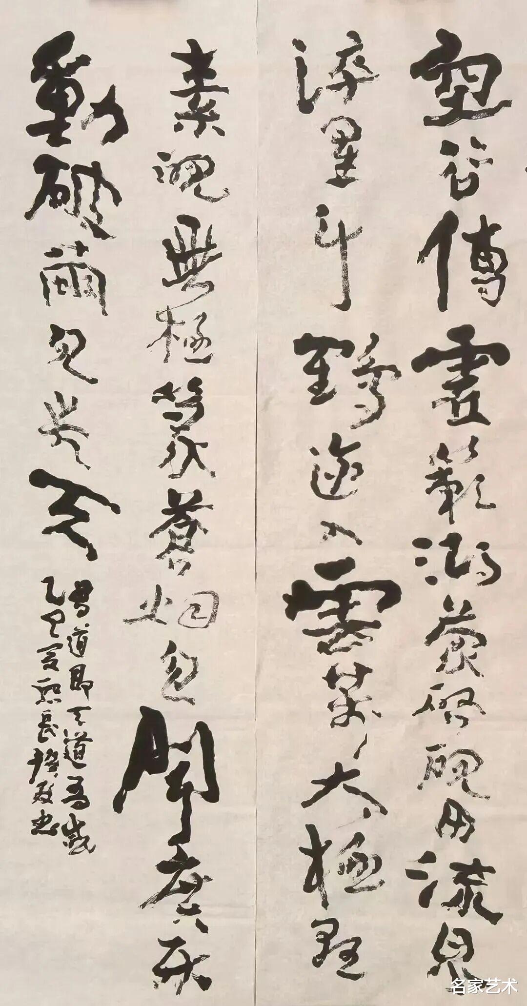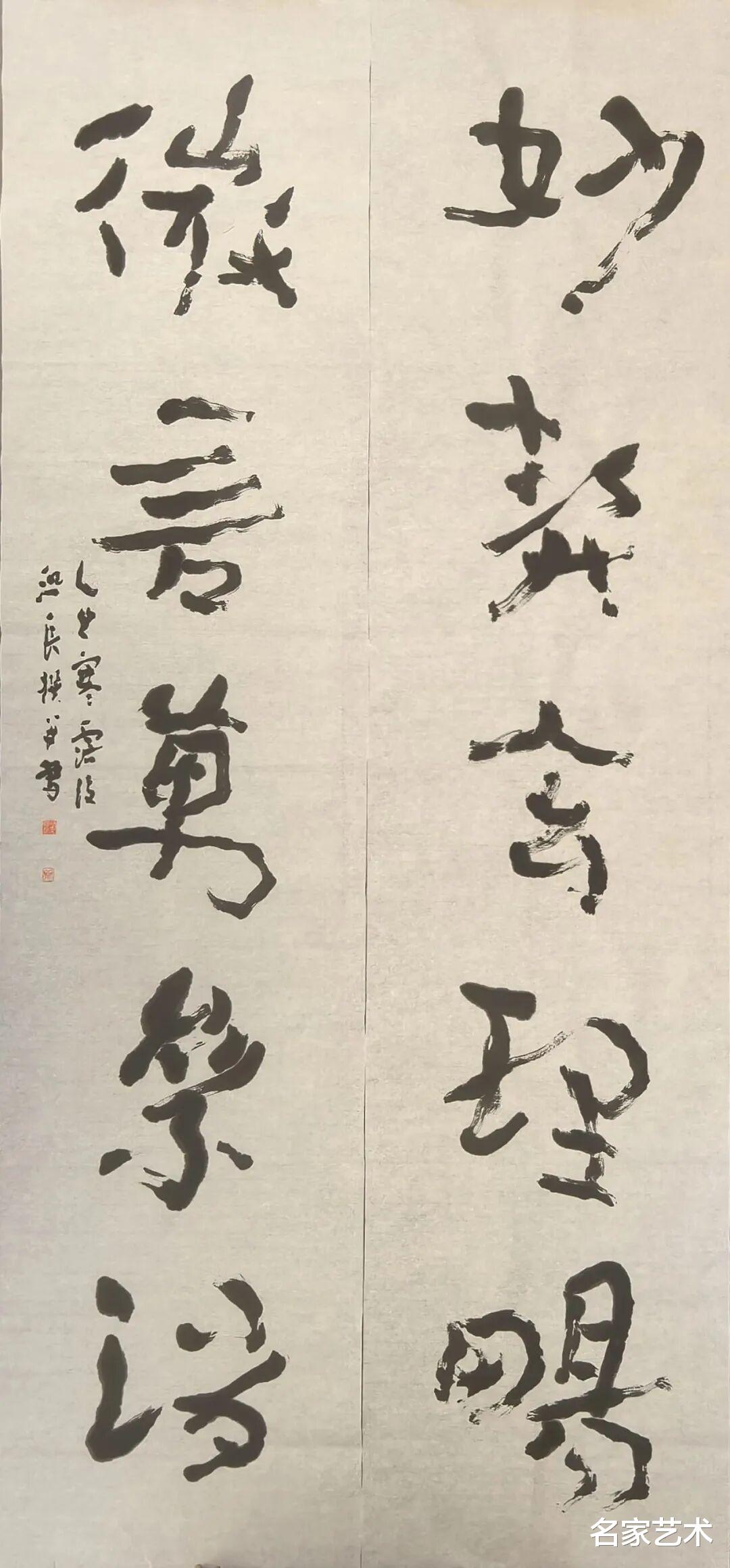 抽象为相——国画大写意与书法狂草在抽象层面的汇流,形成了独特的“东方水墨抽象”。它不同于西方抽象表现主义的情感宣泄,而是有控制的释放、有章法的混沌、有根源的自由。我的《书道即天道》榜书对联系列作品,便是探索这一方向的实验的开端。