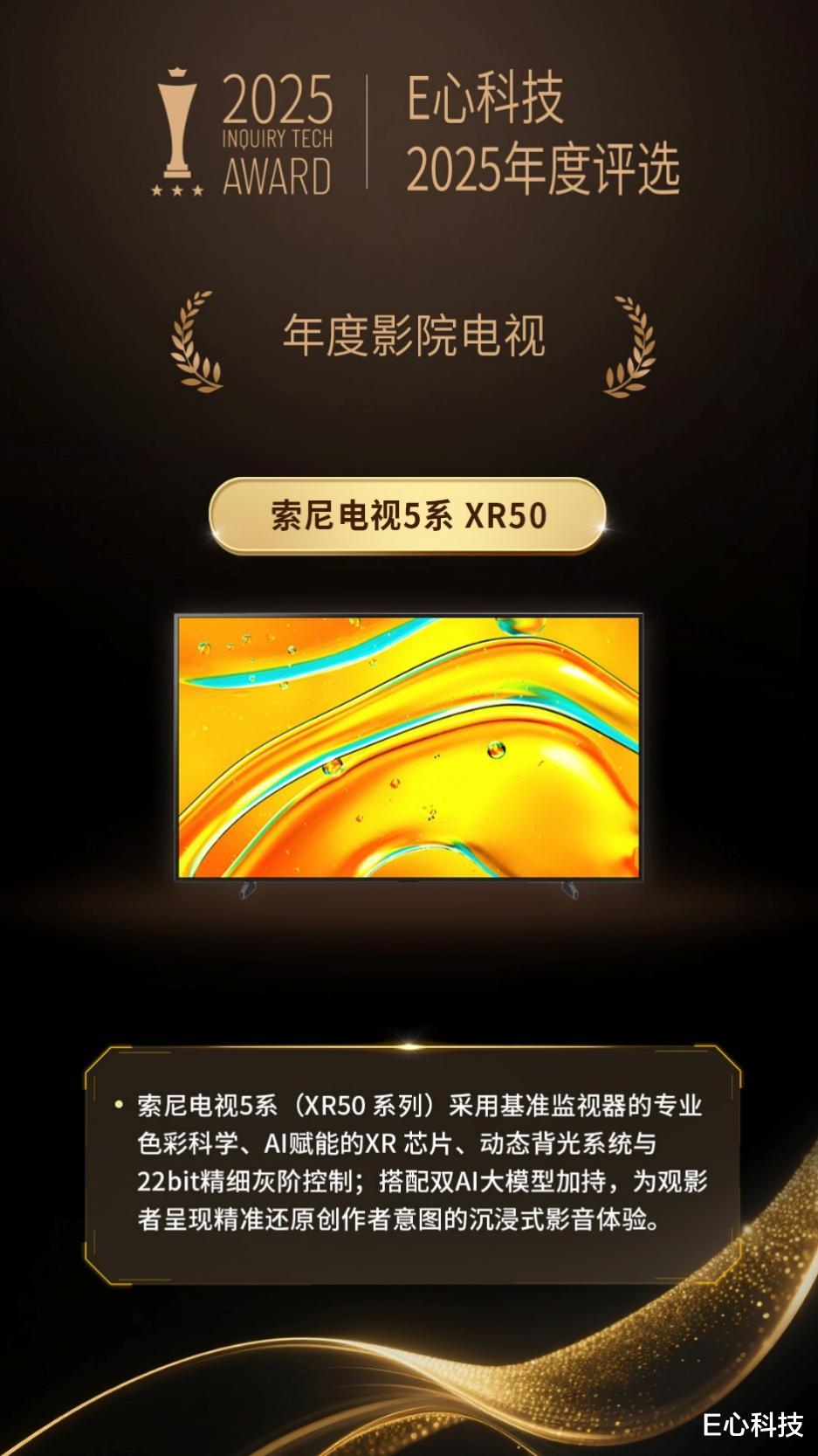 在本次E心科技2025年度评选中,索尼电视5系 XR50被评为“年度影院电视”。