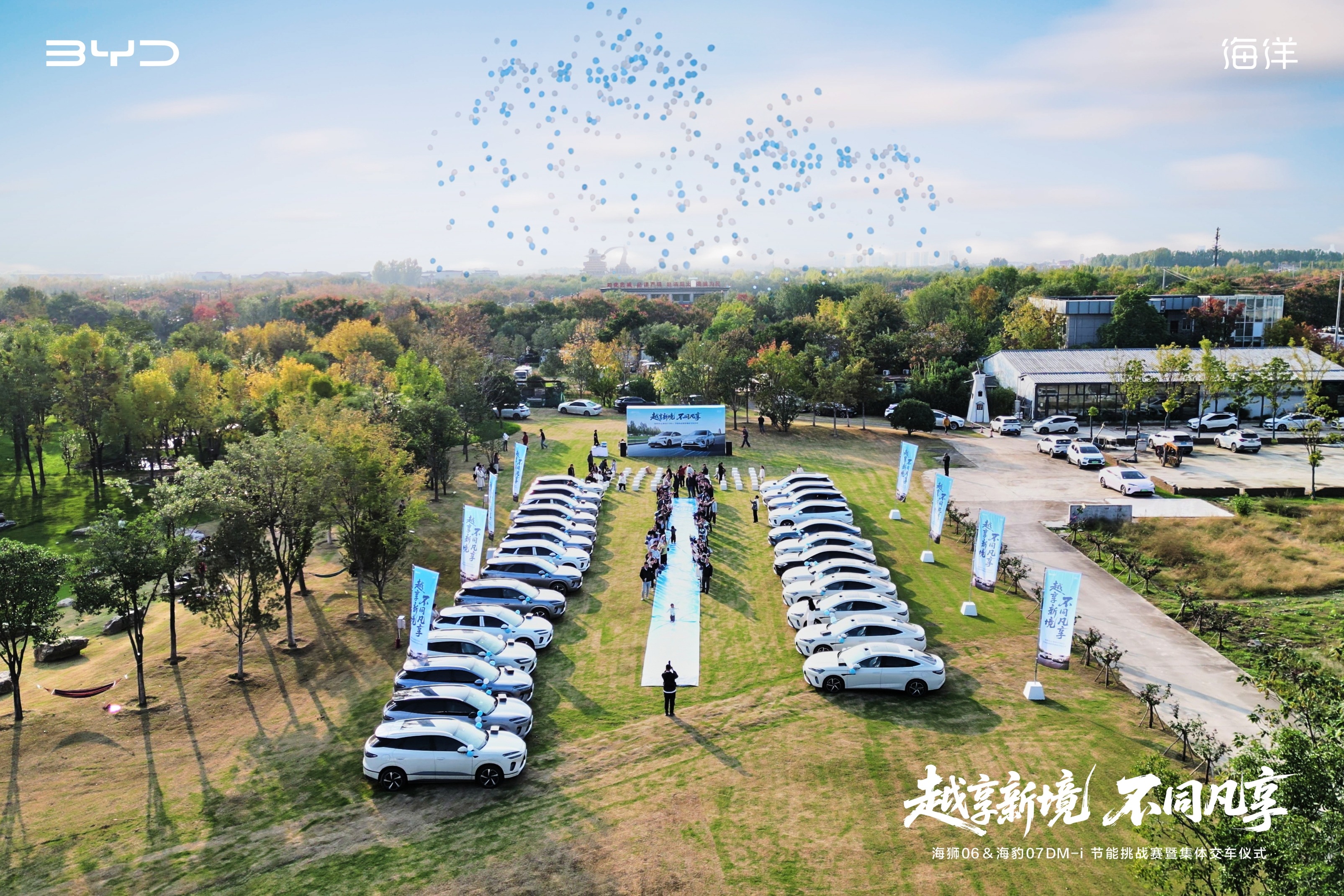 10月26日,比亚迪海洋网旗下两款重磅车型海狮06与海豹07DM-i的数十位准车主、西安主流汽车媒体以及众多迪粉儿,在多日的阴雨时节后,迎来了一场规模宏大的海狮06&海豹07DM-i节能挑战赛暨集体交车仪式。
