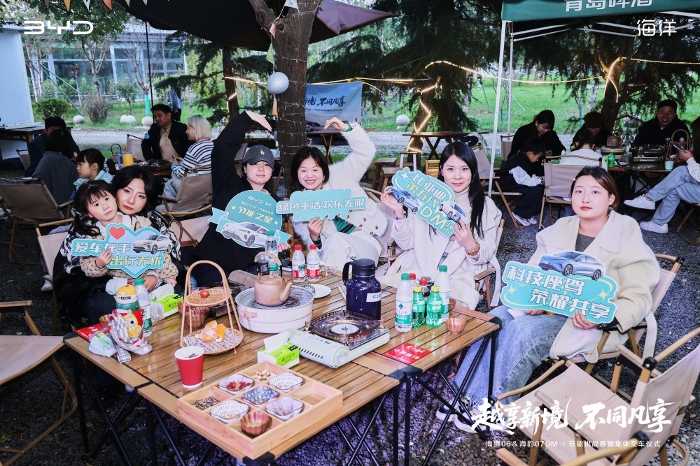 都说选择一辆车也是在选择一种生活方式,而比亚迪的车主从交付的这天就开始了多种生活方式的体验。活动当日,不仅有交车的盛大仪式,还给准车主们准备了湖边垂钓,钓鱼区适配不同身高的渔具与遮阳伞;还有炉边煮茶、露天电影、火锅烧烤等满满一整个周末慢生活的体验,为海狮06 与海豹07 DM-i的准车主们拉开了与新车相伴的序幕。