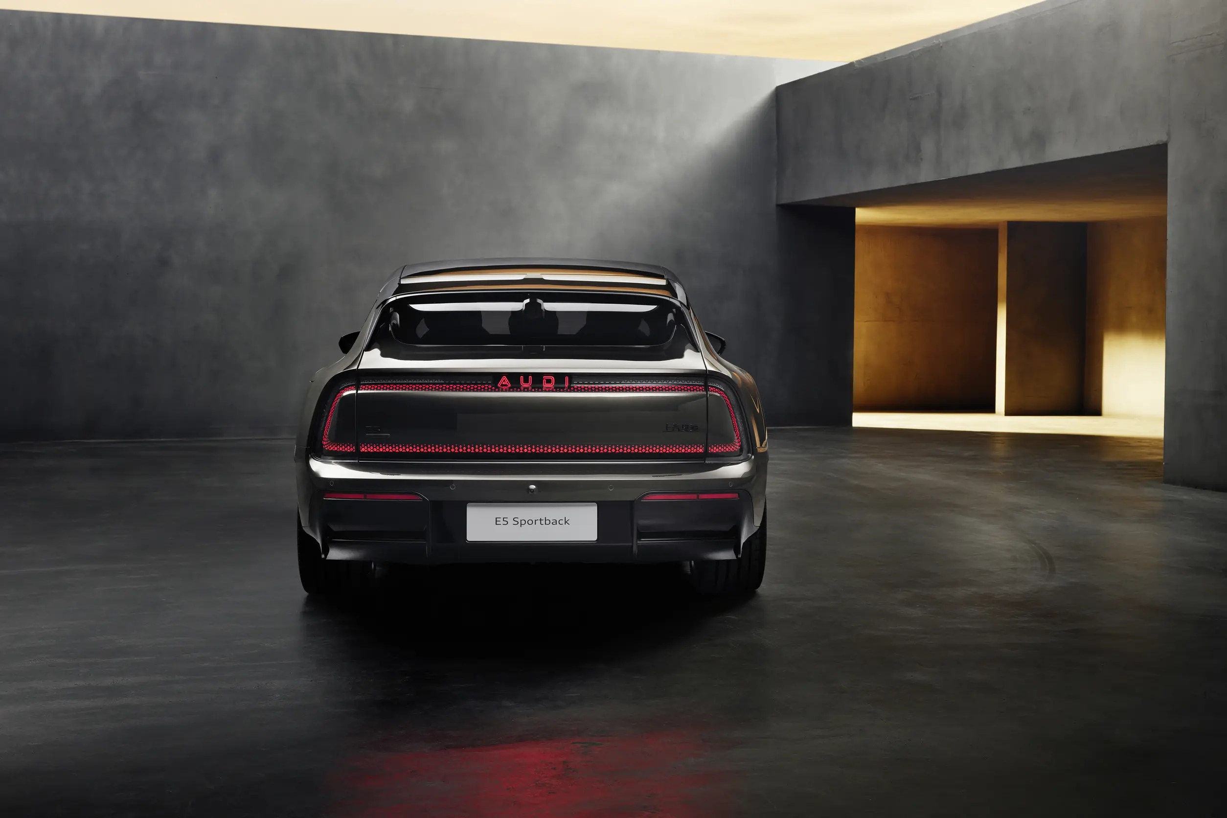 车尾的贯穿式LED尾灯和前脸的灯光设计相呼应,点亮后是渐变效果,质感不错。电动扰流板在高速行驶时会自动升起,除了提升美观度,还能优化空气动力学表现,让车辆行驶更稳定。