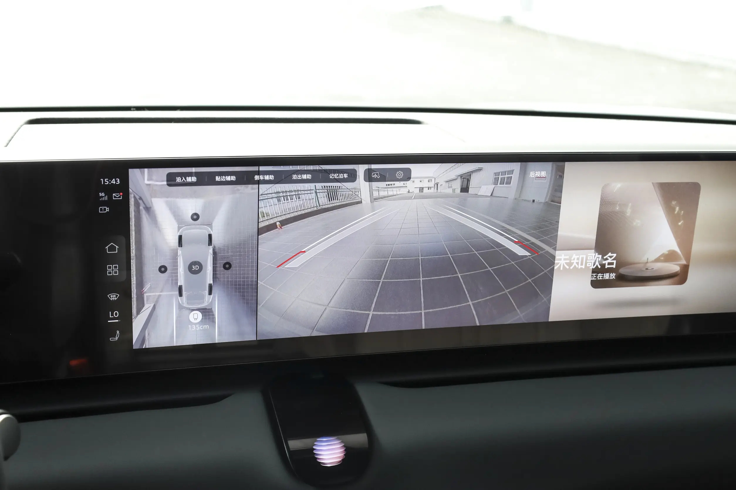 科技感方面,59英寸超感广域屏是车内的视觉核心,它把12.3英寸全液晶仪表、27英寸中控屏和副驾娱乐屏整合在了一起,还集成了电子外后视镜显示屏,无缝贯通的设计视觉效果很震撼。这套车机系统搭载的是高通骁龙8295芯片,算力30TOPS,操作起来很流畅,切换界面、打开应用都没有明显的延迟,还支持多屏联动和手势控制,比如挥挥手就能调节音量,既提升了科技感,使用起来也很方便。