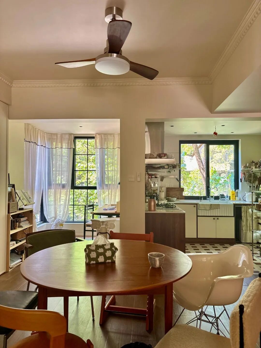 看房当天就被这老破小的窗景吸引了,决定立刻定下来,只花了一个月时间改造,保留了原房东十几年前的装修,只在软装上下功夫,把昏暗老房变成了温馨的小家。
