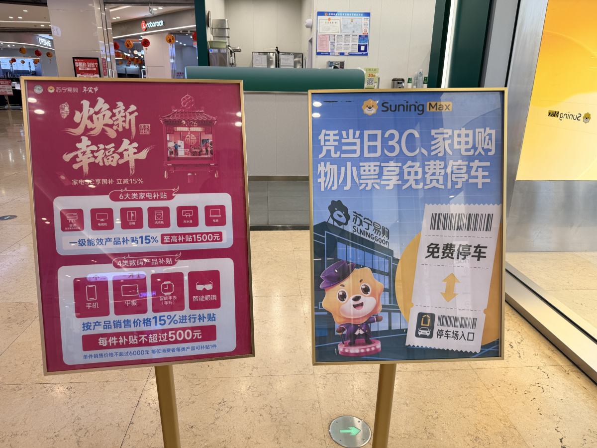 记者首先来到了位于郑州花园路的苏宁易购Max店,刚进卖场,就看到关于“国补”的相关展示牌已放在了显眼位置。