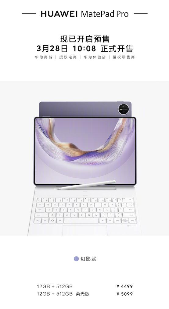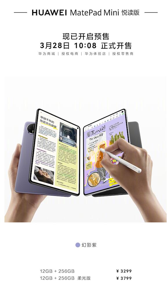 华为MatePad mini悦读版售价3299元起,华为MatePad Pro售价4499元起。