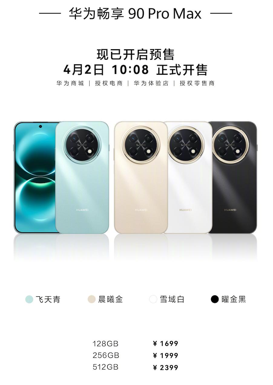 畅享 90 Pro Max售价1699元起,畅享 90 Plus售价1499元起,畅享 90售价为1299元起。
