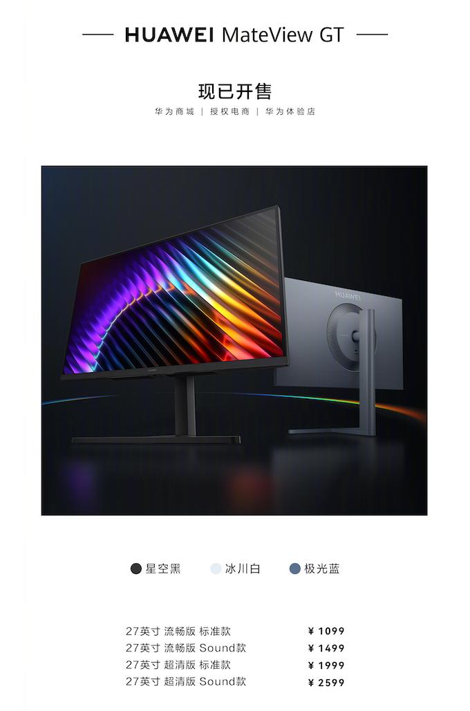 此外,华为MateView GT显示器也同步亮相,该显示器搭载高刷新率屏幕,支持护眼技术,能够为用户带来更流畅的办公、游戏体验,进一步完善了华为的办公产品生态。售价1099元起。