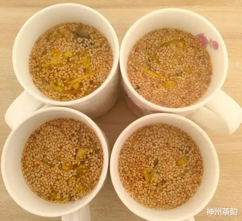 香料茶配制颇有几分讲究,佐料也极考究。八九月间采摘的新菊,去其花蒂,洗尽晒干,用盐腌制;将生姜,萝卜,橘皮细垛成丁,也用盐腌制,生姜,萝卜还须晒干,以便储存。同样拌以炒得喷香的黄豆,花生,芝麻,米粒,还有花椒。一杯茶端上来,上不见水,下不见底;若用玻璃杯冲泡之,层次更见分明,芝麻,黄豆,花生,炒米,花椒悬浮在上,生姜,萝卜,茶叶,橘皮静沉水底,其中菊瓣如云,或升或沉,怡趣自然。茶香袅袅,芽尖剔透,白菊晶莹,观之赏心悦目,啜之齿颊留香,令人心旷神怡,飘然若仙。