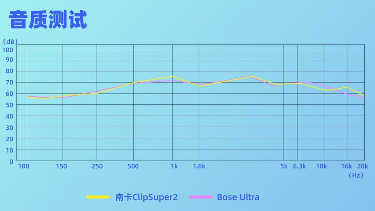 南卡ClipSuper2:从频响曲线来看,耳机的整体声音表现非常均衡,三频的衔接顺畅。它搭载了自研的SuperSound OS3.0系统和NanoBass TiCeram-X双核声学引擎,让声音的层次更丰富,空间感更立体。低频的表现饱满有弹性,中频的表现自然,高频明亮通透但不刺耳。整体的听感开阔、细节丰富,立体感十足,让人很容易沉浸其中。