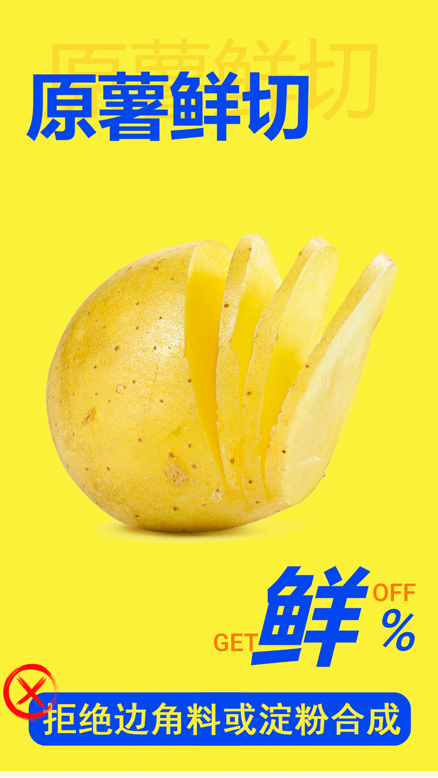 精准鲜切:坚持原薯整切,不拼接、不合成,切片厚度严控在1-2mm,薄厚均匀,保证每一片受热一致,脆度相同,拒绝厚薄不一、口感参差。