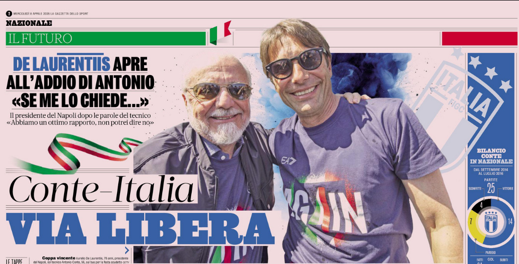 意大利足协新主席马拉戈即将上任,而那不勒斯主席德劳伦蒂斯早已公开表态:“如果安东尼奥提出想去执教意大利队,我会同意。”