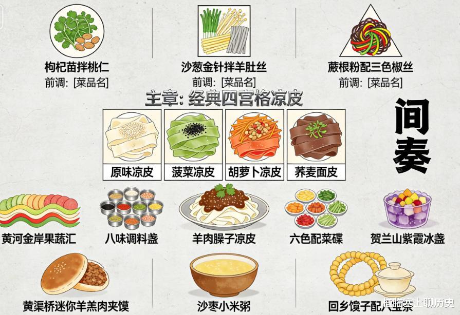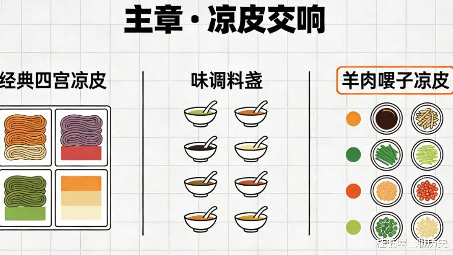 凉皮宴的精髓在于“宴”——它将一种街头小吃,通过精细的分工(面筋、黄瓜丝、面皮、辣油、醋汁分开放置)和组合仪式,升华为一种集体生活的美学。
