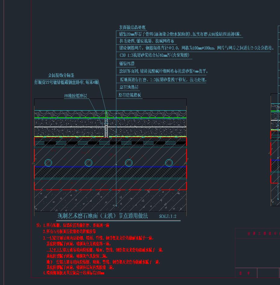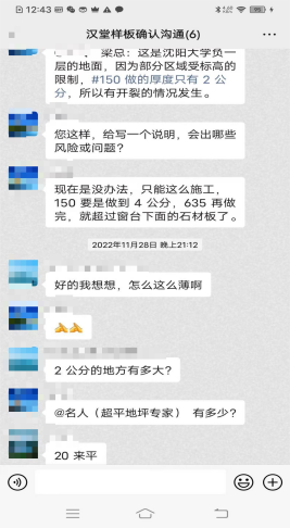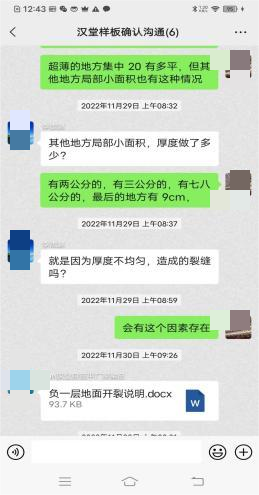 刘某芬在在调取证据过程中发现,设计图纸无机磨石面层厚度为20mm,万某晶对刘某芬的技术交底无机磨石面层厚度为13mm,无机磨石面层厚度直接减了3分之一,这也是产生质量问题的主要原因之一。