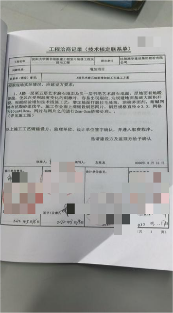 (工程洽商记录,刘先生提供)