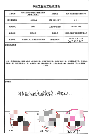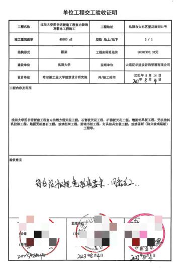 (单位工程交工验收证明,刘先生提供)