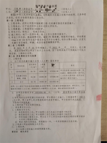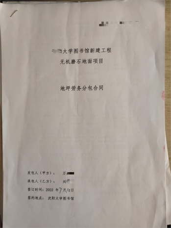 (地坪劳务分包合同,刘先生提供)