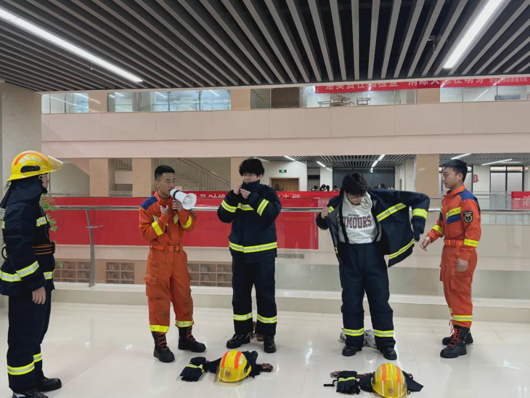 本次活动聚焦趣味性与实效性相结合,设置了“消防知我知道”知识问答、“战斗服穿戴大pk”、“趣味消防接力赛”、“消防器材识别站”、“查找消防漏洞”、“我是小小消防员”及“实战演练”等多个体验环节。活动现场,同学们分组参与,秩序井然,在轻松愉快的氛围中学习掌握了基本的防火、灭火、逃生知识。