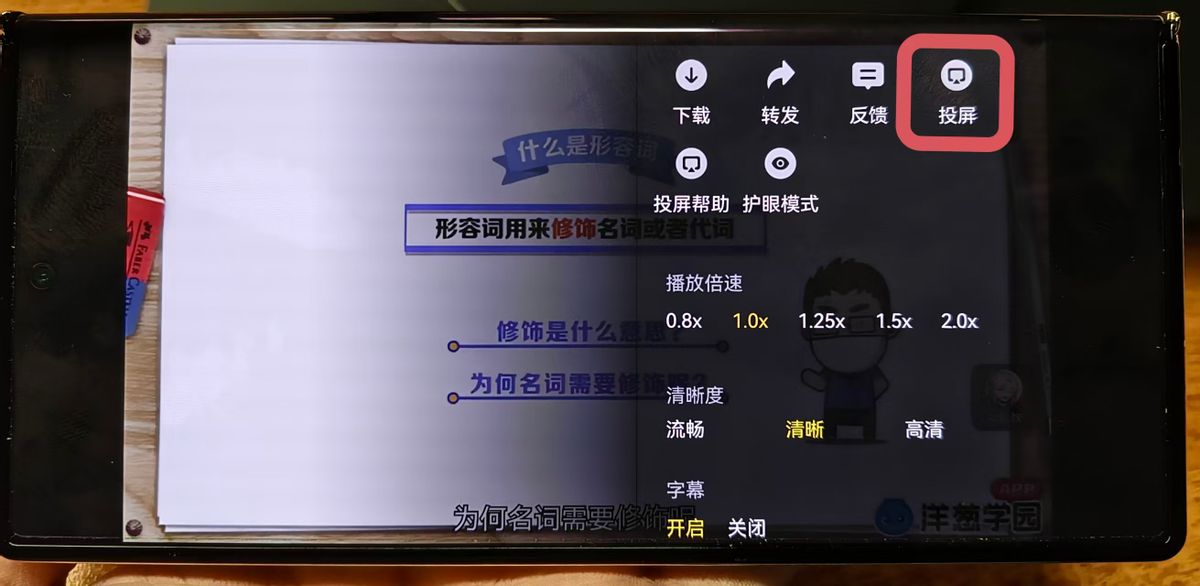 在看教学视频时,鸿蒙版洋葱学园的投屏功能也特别实用。孩子总捧着手机,伤眼睛不说,我们看着也心疼。现在只需点一下投屏按钮,鸿蒙版洋葱学园的教学视频就能投到电视上,不仅画面更大看得更清楚,而且对眼睛更友好。现在我家的电视都快成他的专属学习屏了,每天晚上吃完饭投一节课,也不用我们时刻监督。