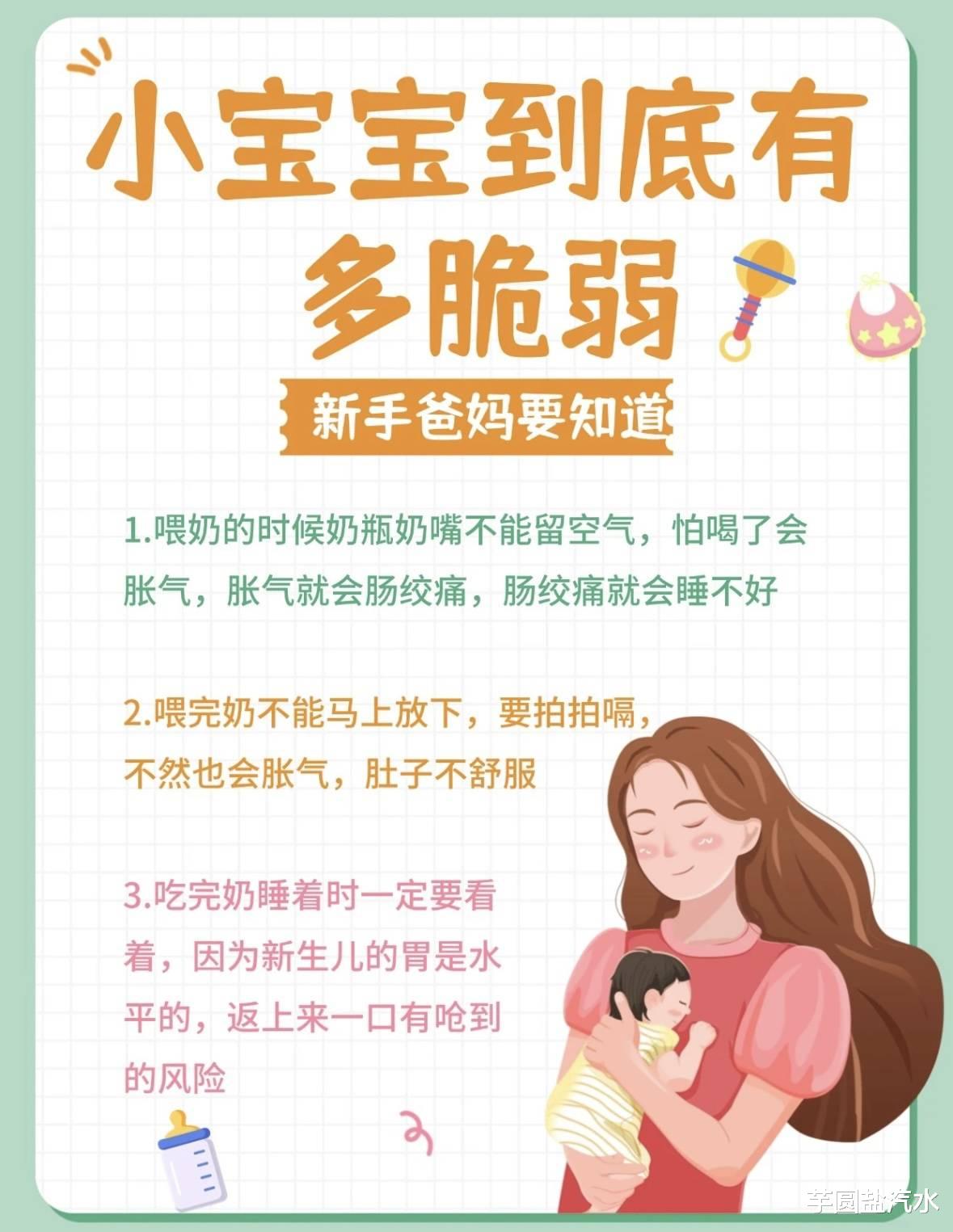 • 红线:吃完不拍嗝+立即平躺→吐奶+吸入性肺炎。----