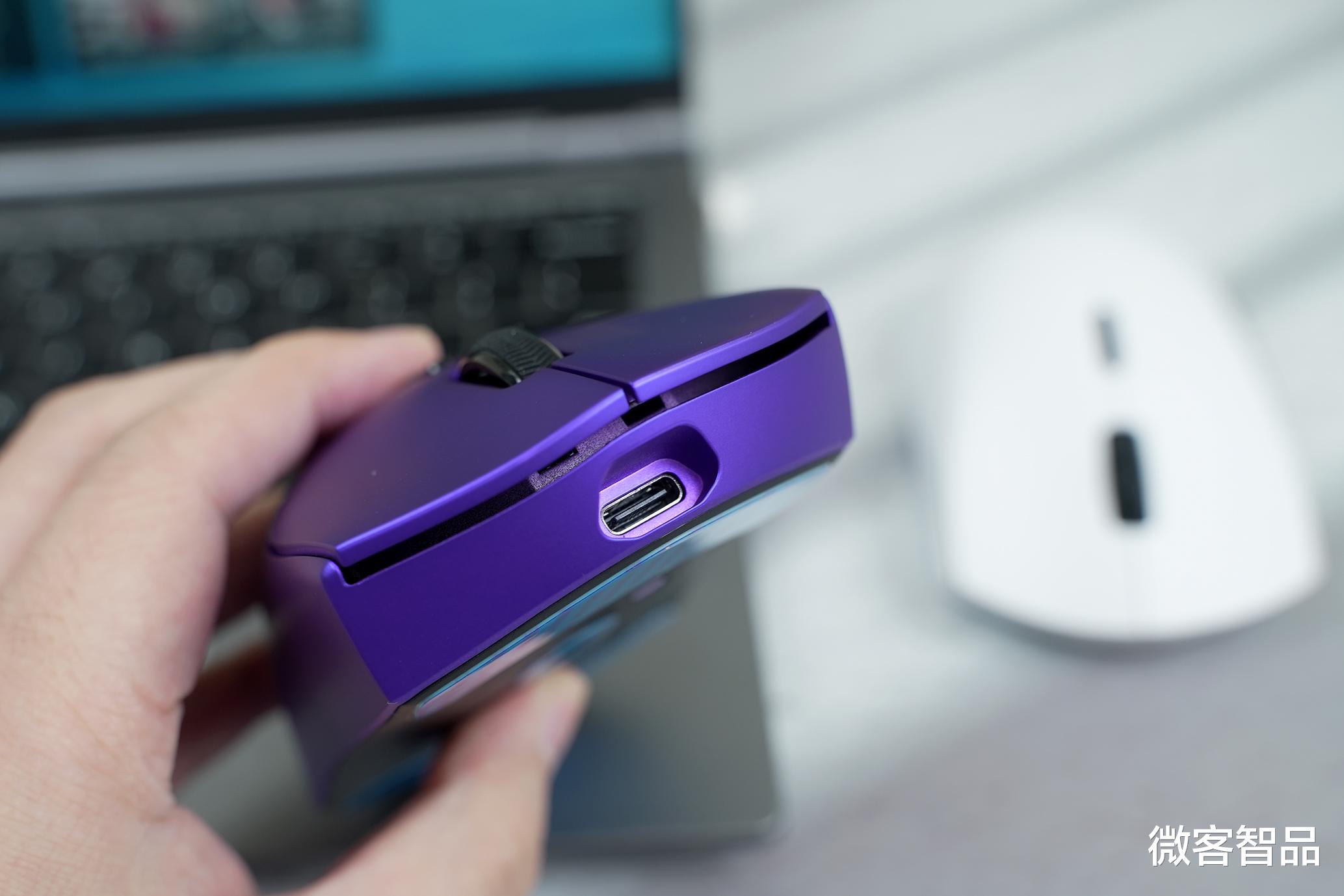 鼠标顶部的Type-C接口既是充电接口,也可以用来连接8K带屏蔽高速数据线变身有线连接。