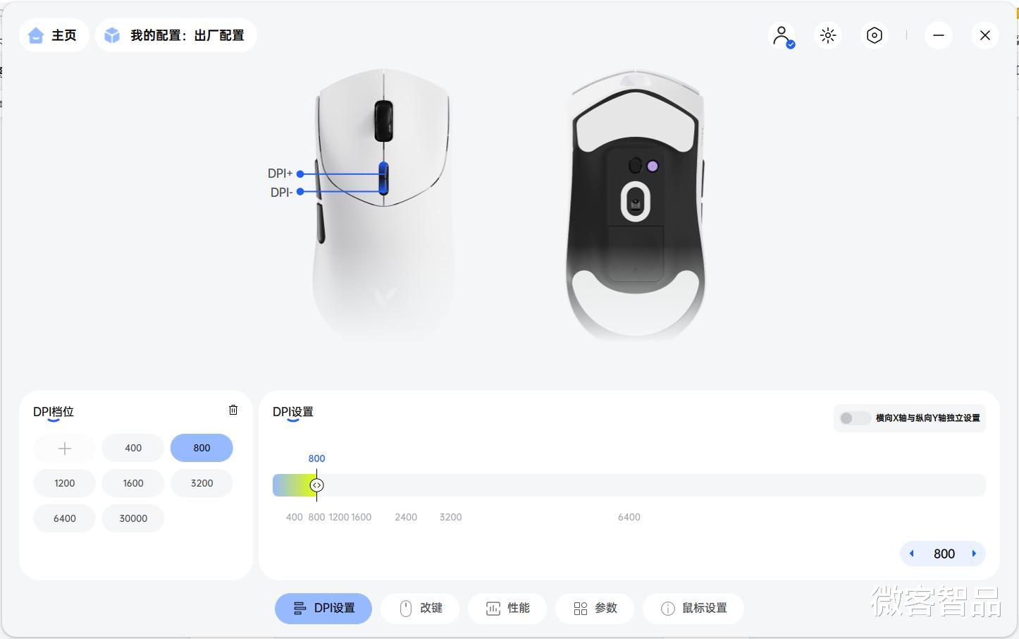 在按键布局上也是一模一样,鼠标前侧的左右按键采用分离式设计,可使按键手感更为平衡。左侧两个前进键,顶部除了滚轮以及中间的两个自定义键,中间还有一个隐藏式的小指示灯,一般充电的时候或者切换Dpi才会显示。