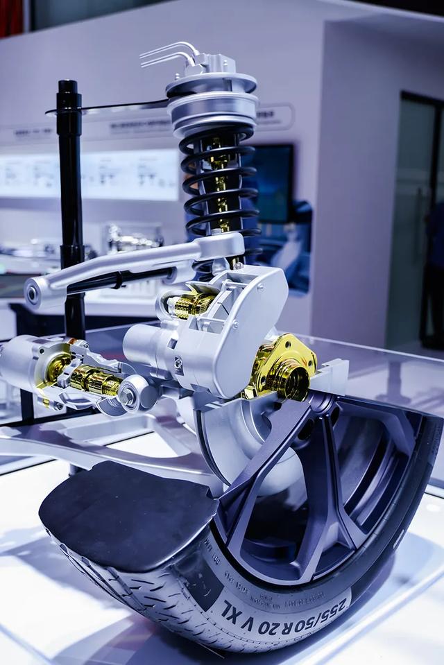 集成电子制动(EMB)、电动悬架、后轮转向单元及轮毂轴承的“角模块”概念展品
