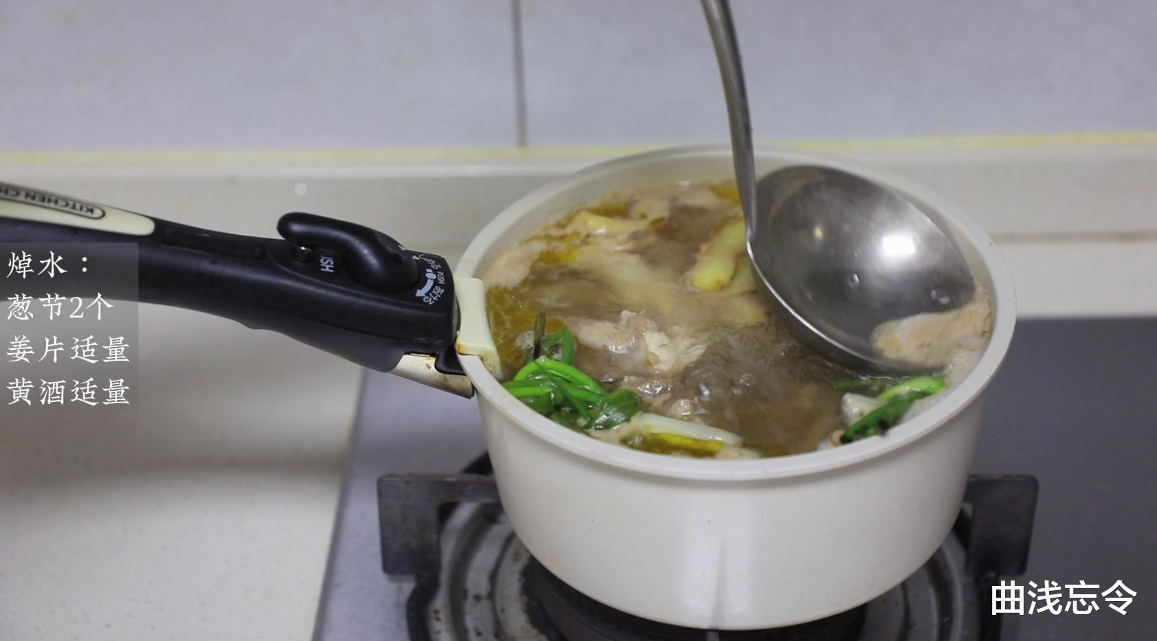焯水:葱节2个、姜片适量、黄酒适量