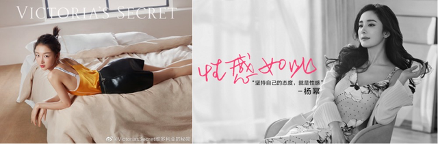 第二个是代言人重构,讲一个新维密的故事。在辉煌时期,维密的代言人是吉赛尔・邦辰、海蒂・克鲁姆、米兰达・可儿等清一色超模。品牌走下坡路后,维密告别超模路线,在2020年官宣周冬雨为大中华区代言人、杨幂为亚洲区代言人。