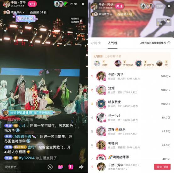 这一点在团播组合@千娇·芳华组合与国家4A级景区铜官窑的合作中得到了完美印证。这场直播不仅累计吸引15万网友围观,并登上抖音直播人气榜首位。评论区里,“看得起鸡皮疙瘩了”、“长沙还有这么好玩的地方”等留言层出不穷,充分显示了团播内容对景区知名度的直接拉动效应。