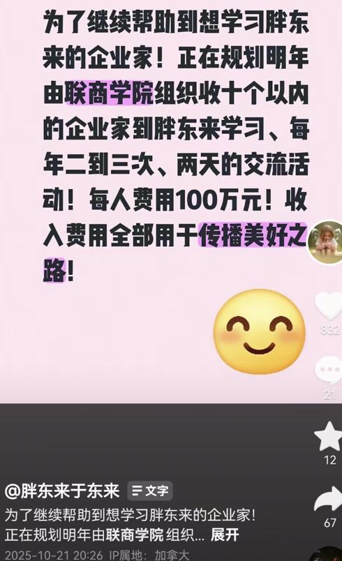 交流分享三小时、每次50万,交流活动两天、每人一百万,没想到胖东来创始人于东来,也走上了天价培训班的路!