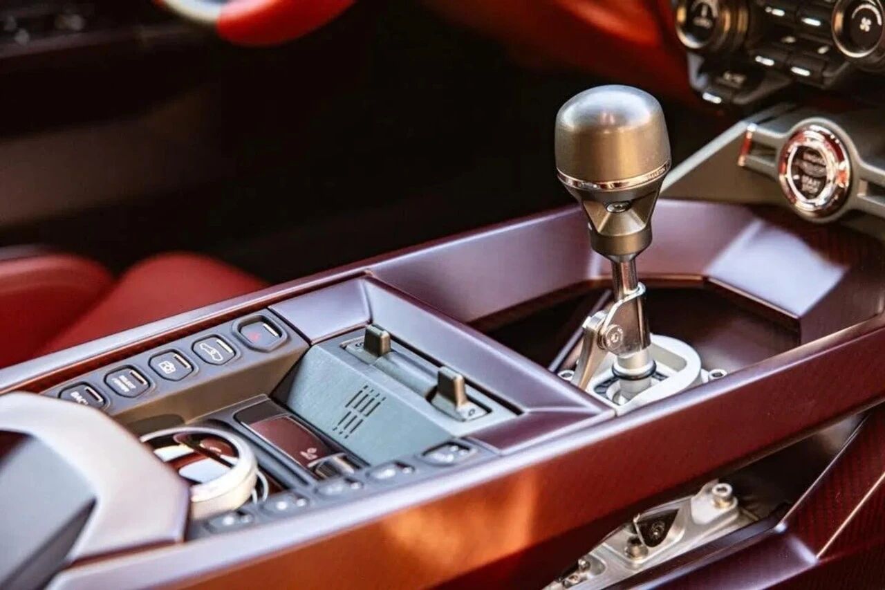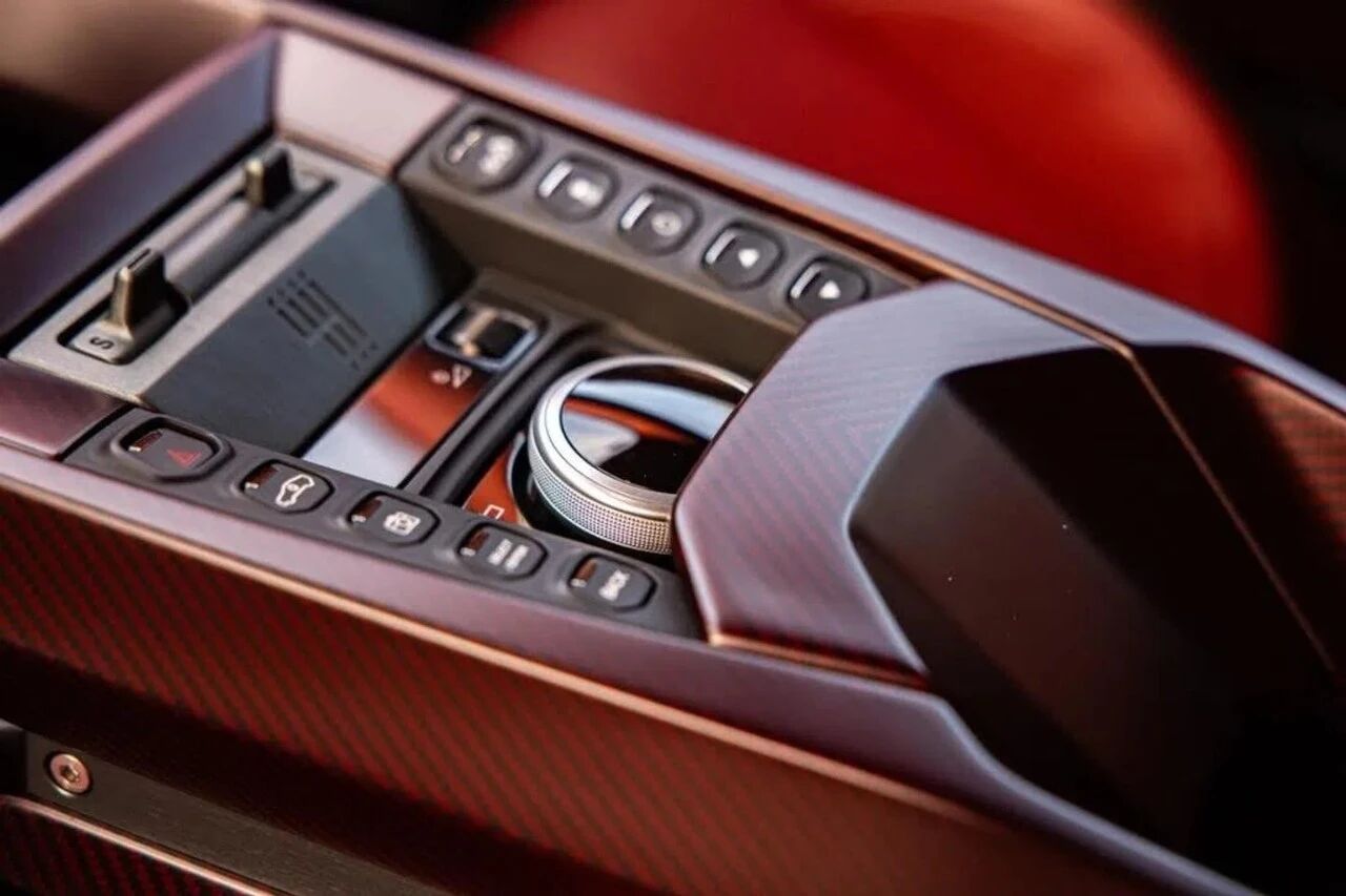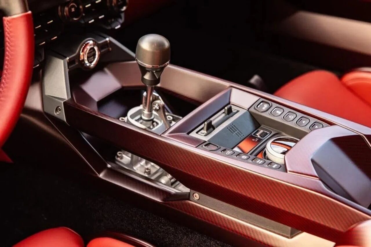 车内是硬核与豪华的完美平衡。大臣红真皮搭配黑色Alcantara,带加热通风的碳纤维运动座椅;方向盘用大臣红真皮配拉丝铝,轻量化钛合金换挡杆,外露换挡连杆强化机械感。防滚架喷成炮铜色,配红碳铭牌与FIA安全带接口,轻量化地毯与精简隔音,让驾驶者能清晰捕捉V12引擎的每一次轰鸣,感受最直接的机械反馈。