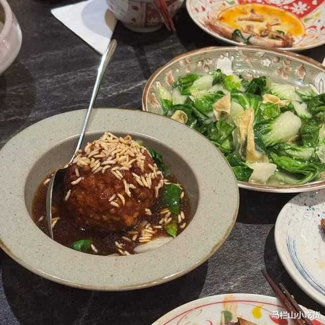 狮子头,纯手工制作的狮子头,选用瘦肉和肥肉,经过几道工序制作而成,上面还放了浇汁,吃起来口感细腻,咸口。