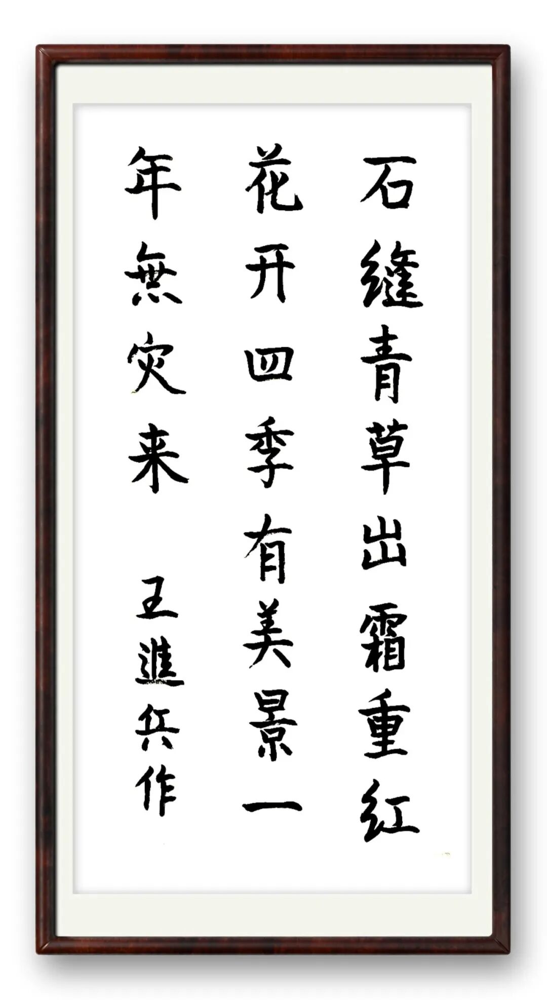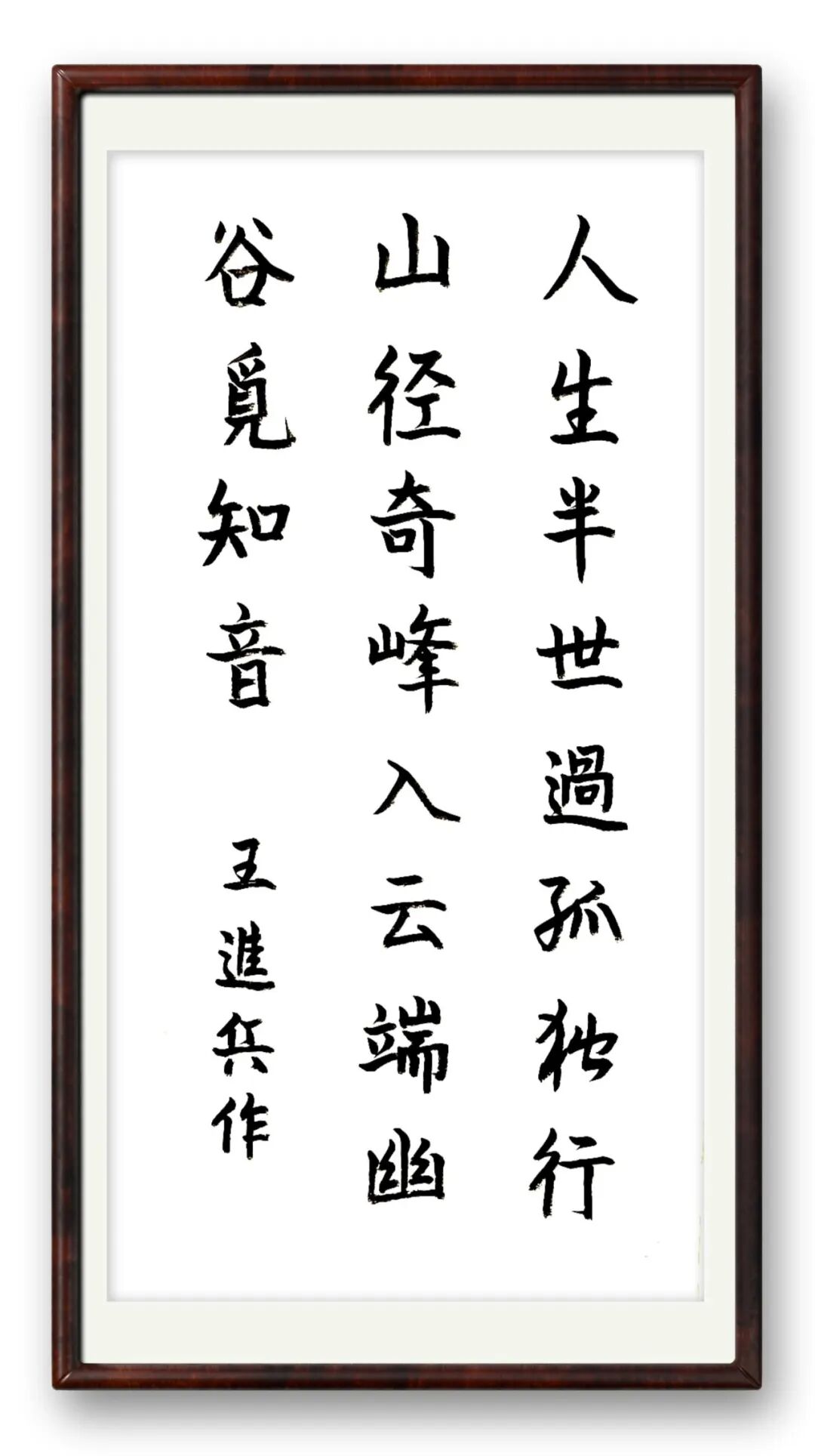 好的书法,贵在“字外功夫”,这是书家学识、品格与阅历的综合体现。王进兵先生常年身处公职岗位,见惯人间烟火却坚守心中底线,这份独特阅历让他的书法多了一份现实温度与精神高度。他不追求笔墨炫技,以朴素笔墨书写真挚情怀;不刻意彰显风格,却在一笔一画间形成独有的笔墨语言——沉稳中见灵动,端庄中见洒脱。