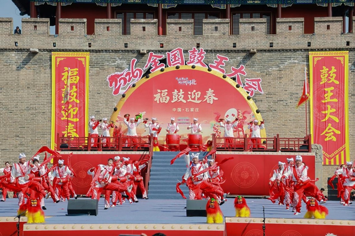 3月15日,正定南城门瓮城广场鼓声震天,“福鼓迎春”2026全国鼓王大会在这里隆重开幕。来自全国各地的鼓队齐聚一堂,用铿锵鼓点唤醒春天,也奏响了传统文化的时代回响。据官方统计,新媒体平台直播观看量突破1400万人次,全网转发浏览量达3.3亿人次,鼓声“震动”全国。