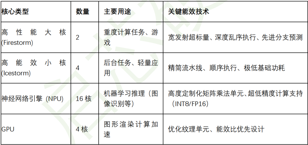 表: 苹果A14仿生芯片核心配置与能效亮点