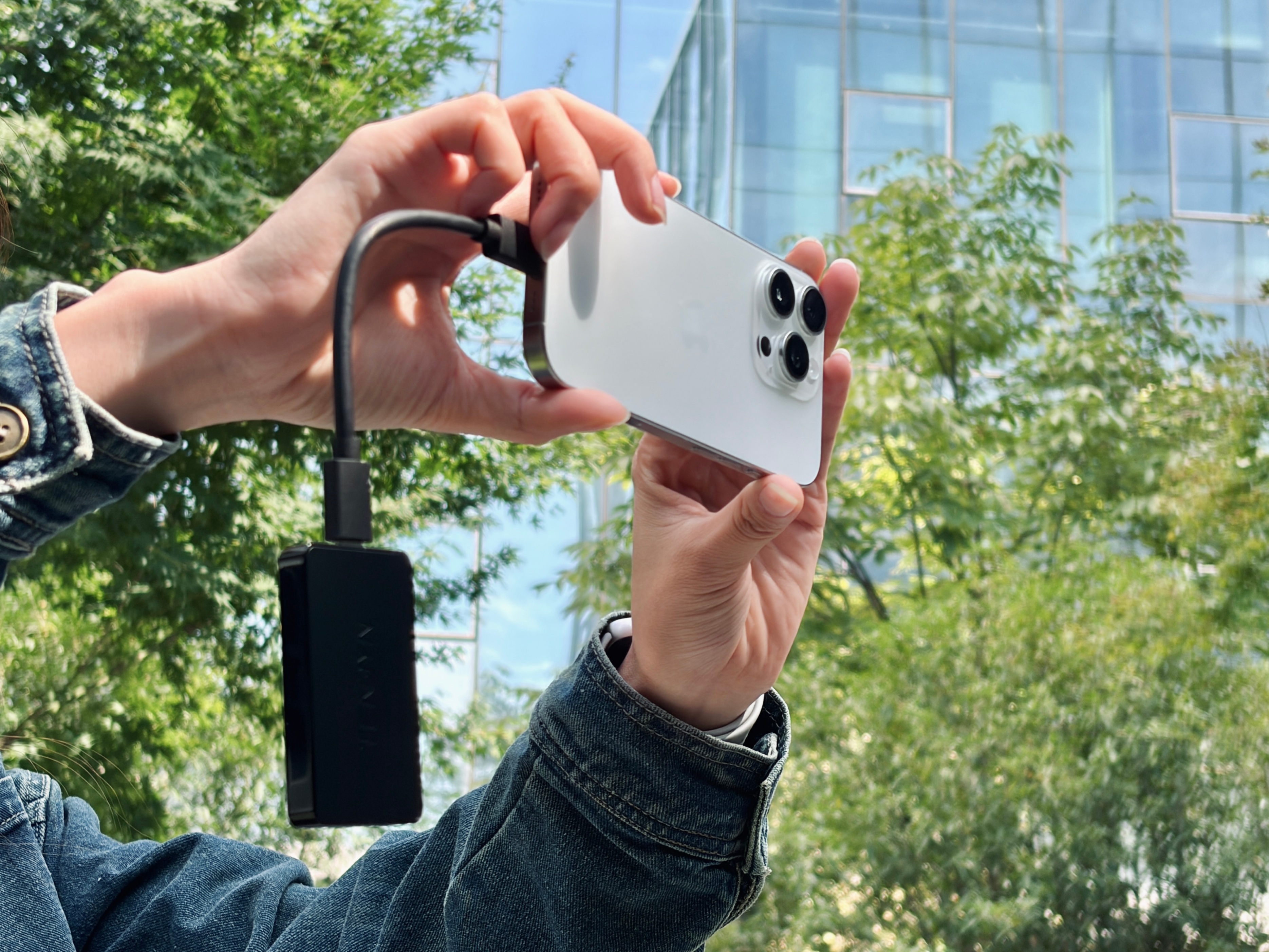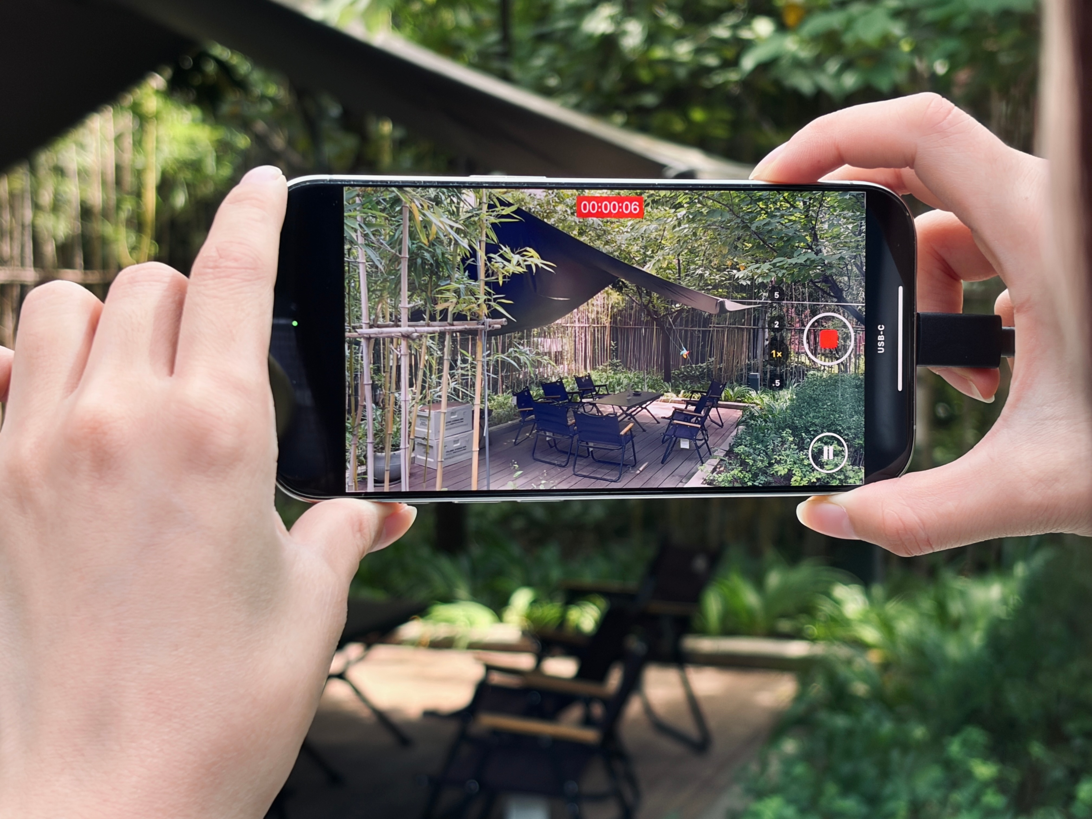 对于非技术党来说,“外接设备”往往意味着复杂的设置,但腾隐P2000与iPhone 15 Pro Max的适配堪称“傻瓜式操作”,全程无需下载额外APP,仅凭系统自带功能就能完成连接和录制,新手也能快速上手。
