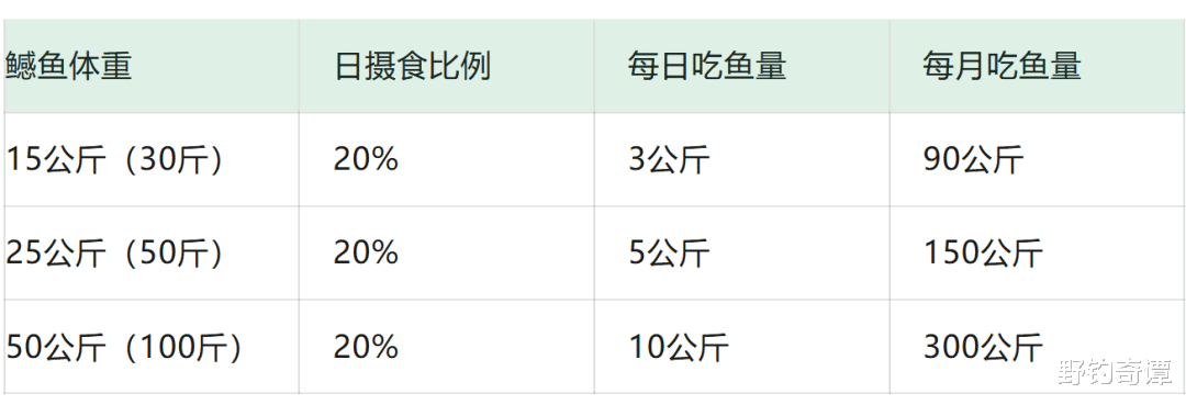 更让人咋舌的是它的饭量。鳡鱼成年后,每天的进食量要达到自身重量的20%到30%。咱们算一笔简单的账: