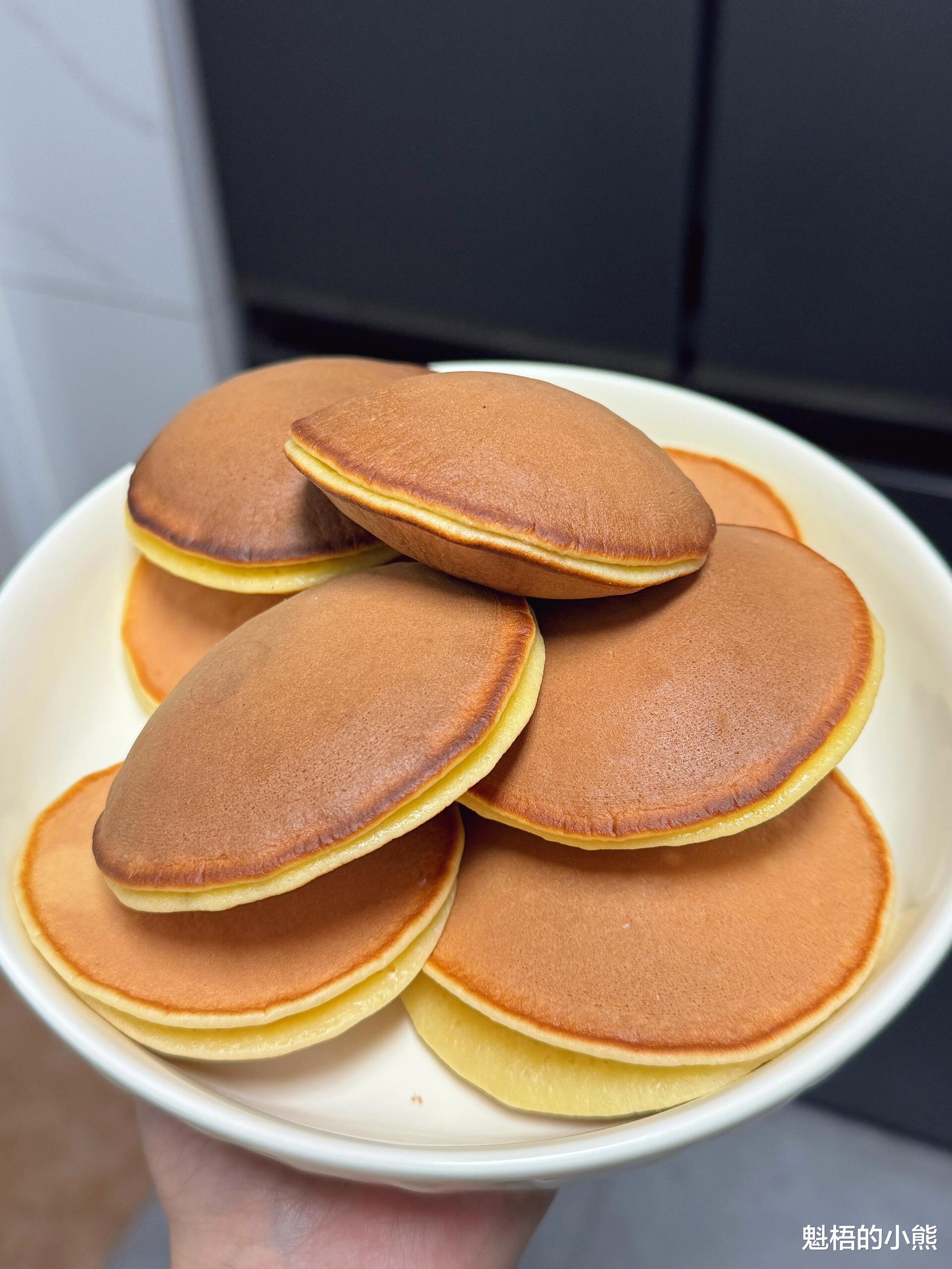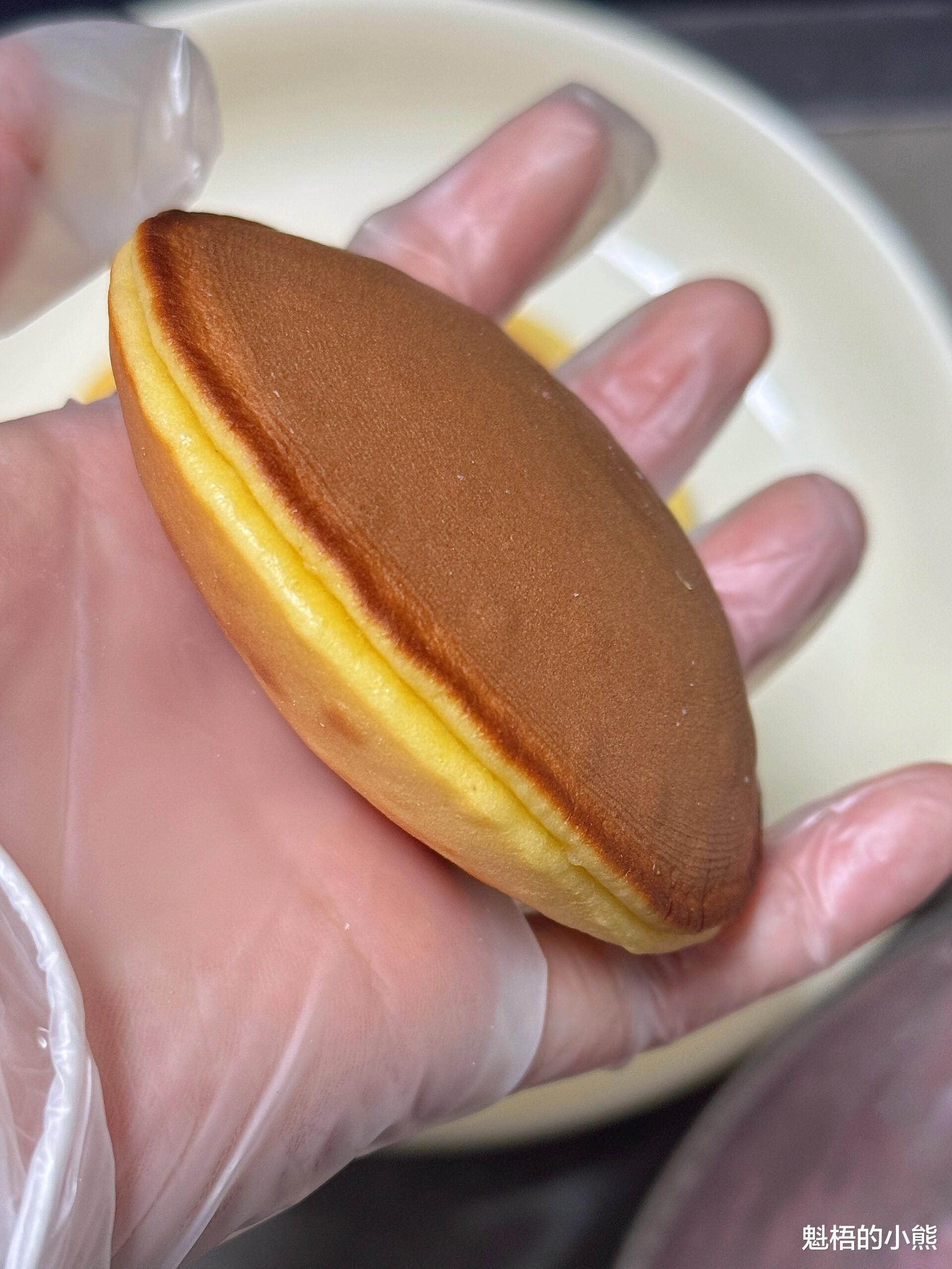 长大后我试过无数铜锣烧配方,大多不尽人意,不是饼皮偏硬,就是放凉后干涩发柴。直到解锁了这套零失败做法:搭配面粉与泡打粉,全程无需打发鸡蛋,面糊静置二十分钟松弛。煎好的饼皮蓬松有弹性,煎制后用湿纱布保湿,就算彻底放凉,口感依旧柔软不干硬。