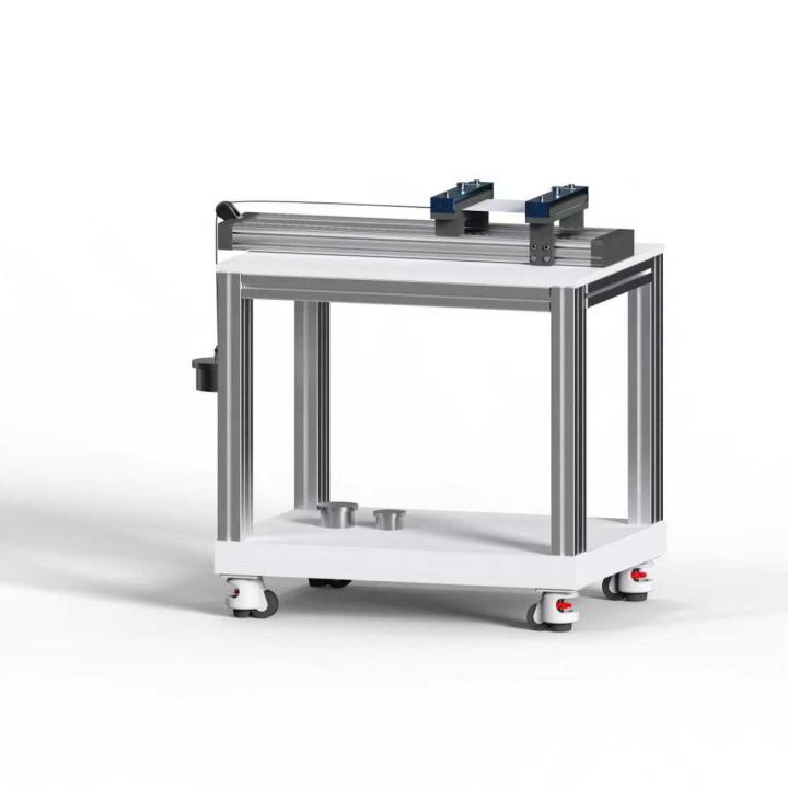特点:严格按照行业标准设计,专业性强;满足绷带四种宽幅(7.5cm、10cm、15cm、20cm)测试需求;配置75N、100N、150N、200N四种砧码组合;夹具采用304不锈钢材质,不易生锈;夹具夹持面采用大波纹防滑设计,同时配备加力杠杆方便旋紧;采用双滑轨导向机构,保证绷带(胶带)受力均匀,平稳移动;配备软质泡沫片,防止砧码砸坏地面。