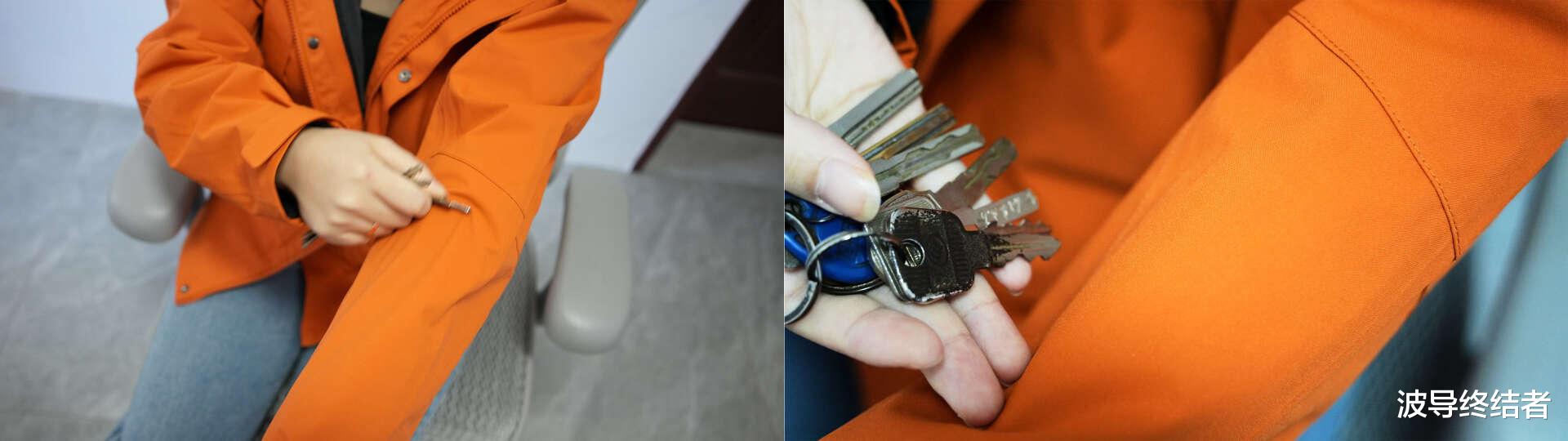 但首先来看看衣服的结构。左右两侧各有一个隐藏式的带链接的大口袋,平时手机啥的可以直接放里面,省得再多弄一个包背。