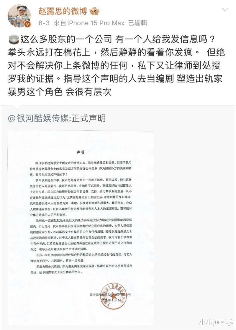 赵露思爆成功甩开银河酷娱“免赔4亿违约金”新东家出手超霸气
